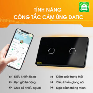 Đặt mua Công Tắc Cảm Ứng Datic – 2 Nút Màu Đen